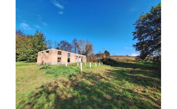 Obok znajduje się rozpoczęta budowa nowego budynku mieszkalnego z pustaka o powierzchni ok. 90 m². Istnieje możliwość kontynuacji prac według własnego projektu. Na działce znajduje się również urokliwy mały staw, który dodaje przestrzeni i wyjątkowego charakteru. Wokół rozciągają się łąki, lasy i piękne widoki – cisza, spokój i kontakt z naturą gwarantowane.