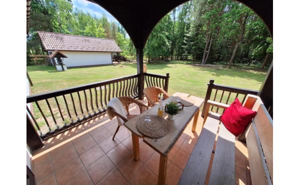 Nieruchomość usytuowana jest na w pełni zagospodarowanej działce o powierzchni 48 arów, co stanowi istotny atut dla osób poszukujących przestrzeni w otoczeniu zieleni i lasu.