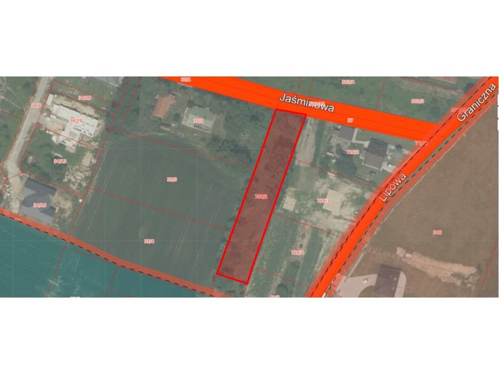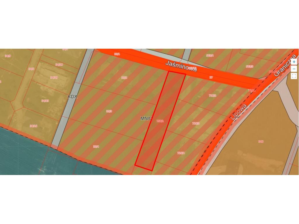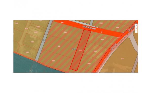 Działka płaska, w kształcie prostokąta o wymiarach ok 16,32 m x 94m , położona w pierwszej linii zabudowy przy drodze asfaltowej, objęta miejscowym planem zagospodarowania przestrzennego, oznaczona symbolem MNU-tereny zabudowy mieszkaniowej jednorodzinnej z usługami. Media: prąd, woda, gaz, kanalizacja przebiegają w drodze i granicy działki.
