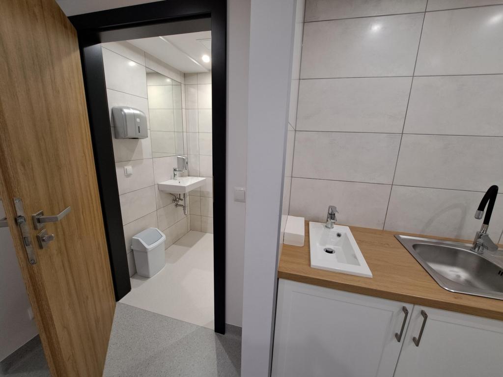 • umywalka oraz miejsce pod zabudowę ze zlewozmywakiem i autoklawem