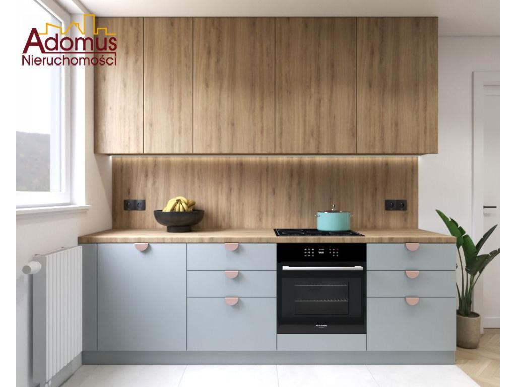 Salon zostanie w pełni umeblowany, a tam znajdziemy sofę, stolik kawowy, szafkę RTV oraz stół z krzesłami, w sypialni wygodne łóżko, pokój ten moze również spełniać rolę pokoju dziecięcego, pracowni, itp. W kuchni meble na wymiar z oraz sprzęt AGD w zabudowie (płyta indukcyjna, piekarnik, zmywarka, okap, lodówka). W łazience przestronna kabina prysznicowa i toaleta, w przedpokoju szafa w zabudowie wykonana przez stolarza. Nowe drzwi zewnętrzne i wewnętrzne.