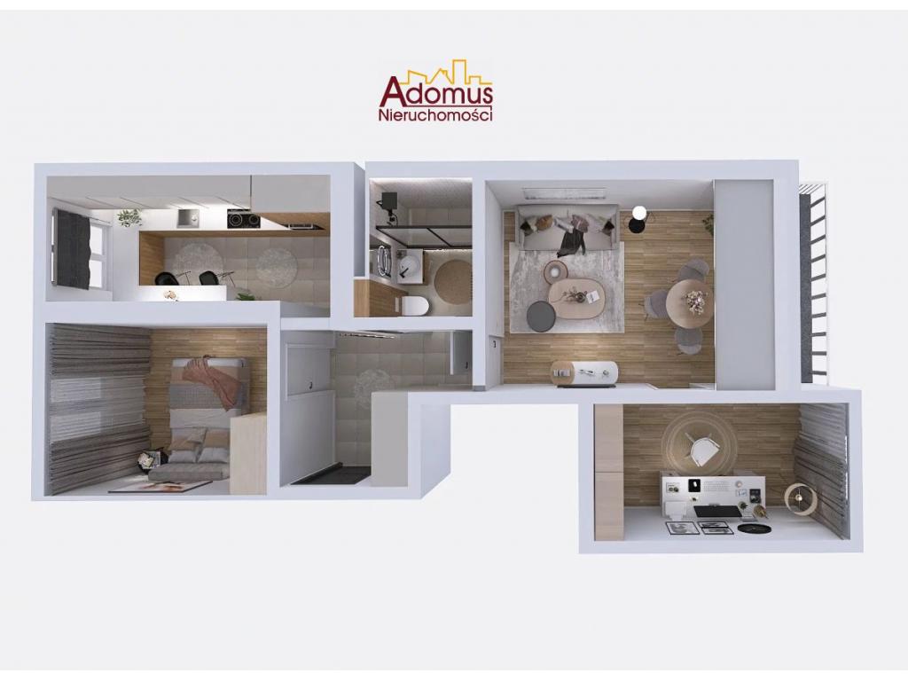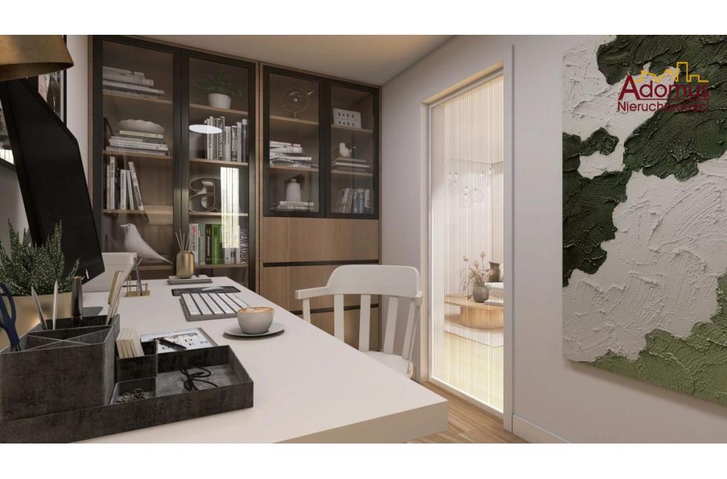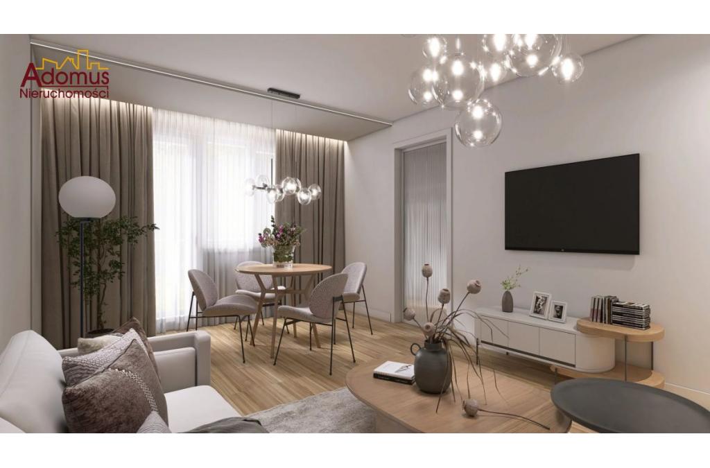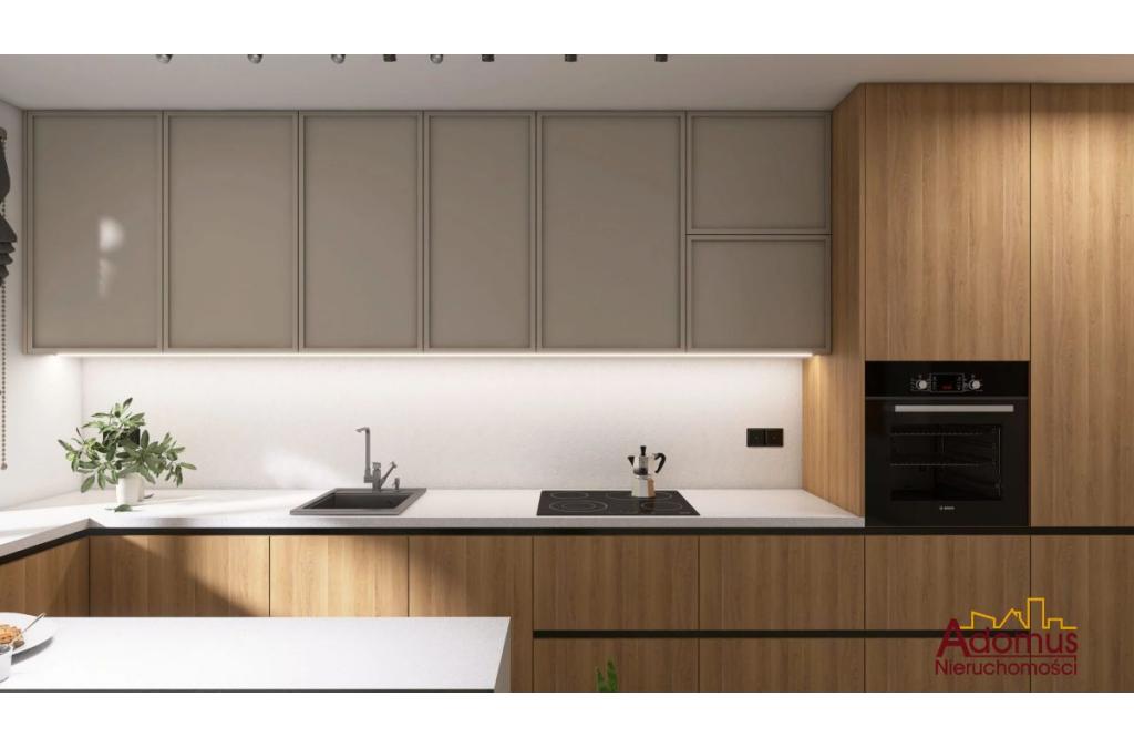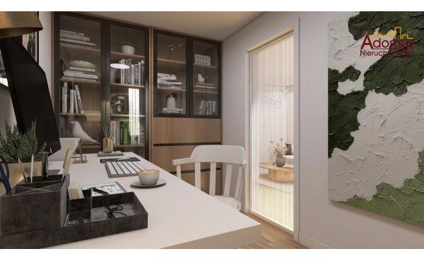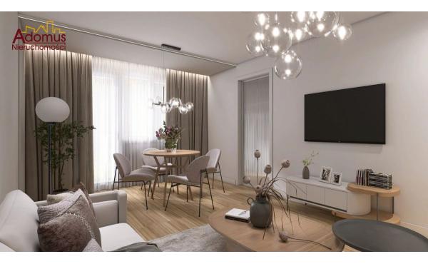 Salon zostanie w pełni umeblowany, a tam znajdziemy sofę, stolik kawowy oraz stół z krzesłami, w sypialni wygodne łóżko oraz klimatyczne oświetlenie, drugi pokój pozostawiono do własnej aranżacji, moze spełniać rolę pokoju dziecięcego, pracowni, itp. W kuchni meble na wymiar z lakierowanymi frontami oraz sprzęt AGD w zabudowie (płyta indukcyjna, piekarnik, zmywarka, okap, lodówka). W łazience przestronna kabina prysznicowa i toaleta, w przedpokoju szafa w zabudowie wykonana przez stolarza. Nowe drzwi zewnętrzne i wewnętrzne.