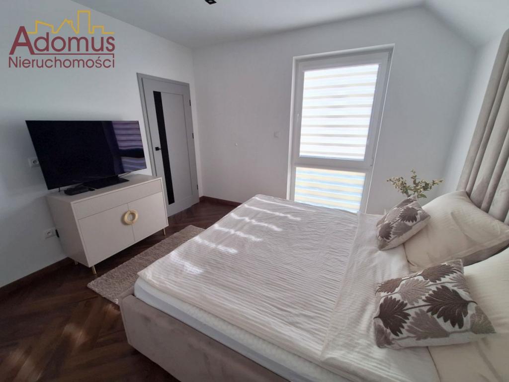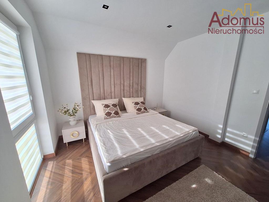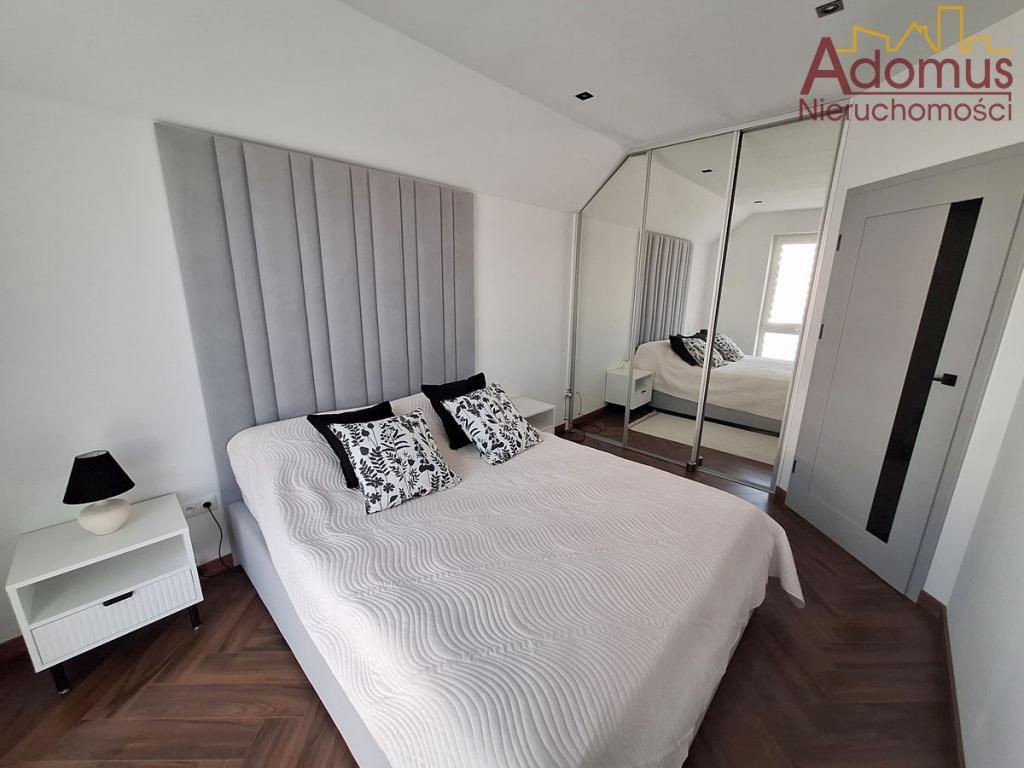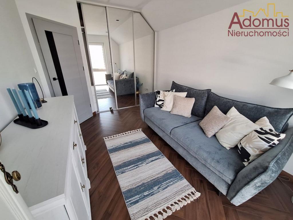 Przestronny salon z częścią jadalną wykończony w spójnej kolorystyce, z nowoczesnym oświetleniem,  nadają wnętrzu ciepła i elegancji. Kuchnia to w pełni wyposażona, autorska zabudowa stolarska wraz ze sprzętem AGD w zabudowie, idealna dla osób, które cenią nowoczesny design. Łazienka zachwyca minimalistyczną formą, oświetlenie i elegancka ceramika tworzą przytulną przestrzeń relaksu. W przedpokoju oraz dwóch sypialniach znajdują się pojemne szafy na wymiar, gwarantujące doskonałą organizację przestrzeni bez utraty estetyki.