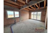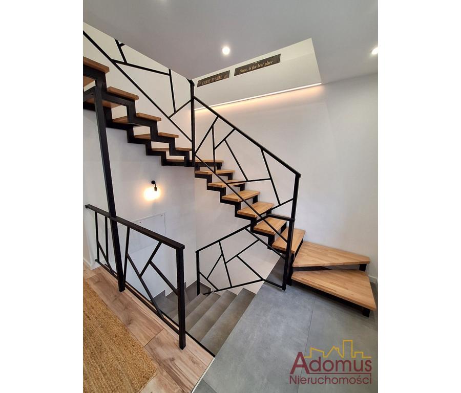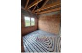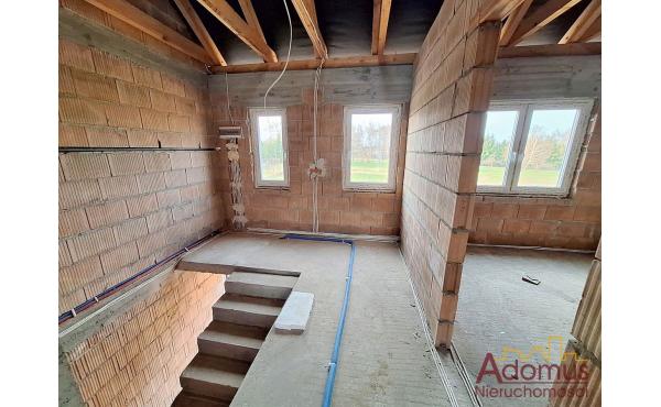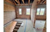 Na poddaszu sufity podwieszane, ocieplone wełną mineralną (25 cm), wyłożone płytami gk. bez szpachlowania, schody prowadzące do mieszkania na poddaszu monolityczne, zabiegowe.