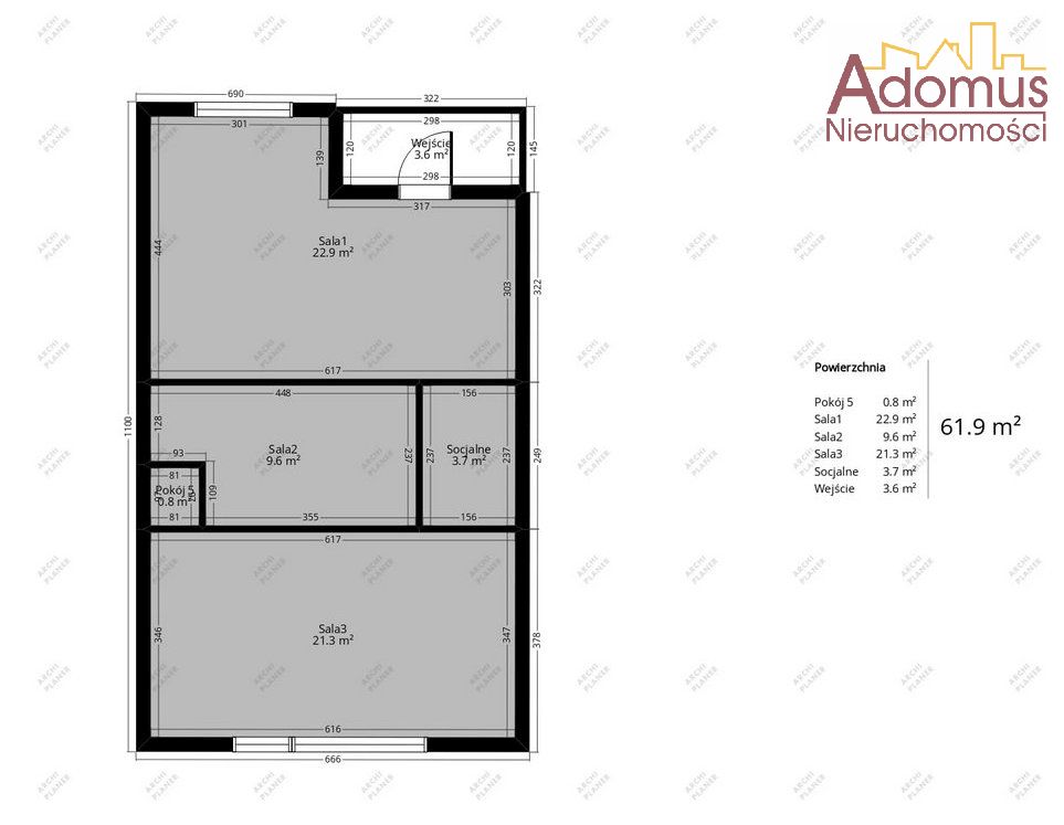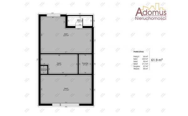 Lokal składa się z dwóch pomieszczeń, toalety, pomieszczenia socjalnego oraz komunikacji .