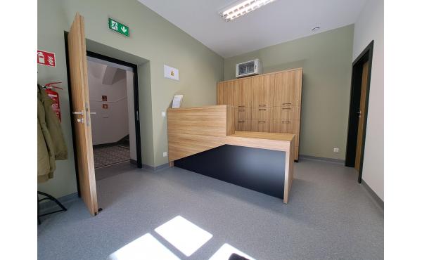 w pełni umeblowana rejestracja pacjentów z archiwum dokumentacji, telefonią wewnętrzną i możliwością podłączenia zewnętrznej linii telefonicznej.