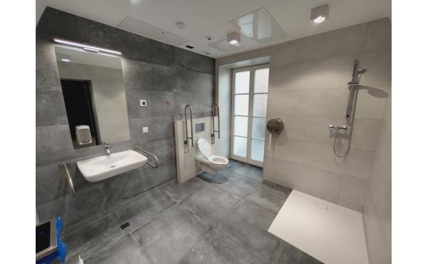 toaleta dla personelu i osobna toaleta dla pacjentów, przystosowana dla osób niepełnosprawnych