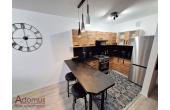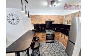 W kuchni meble na wymiar, sprzęt AGD: kuchenka gazowo-elektryczna, okap, lodówka. W łazience wanna z szybą prysznicową, pralka.
